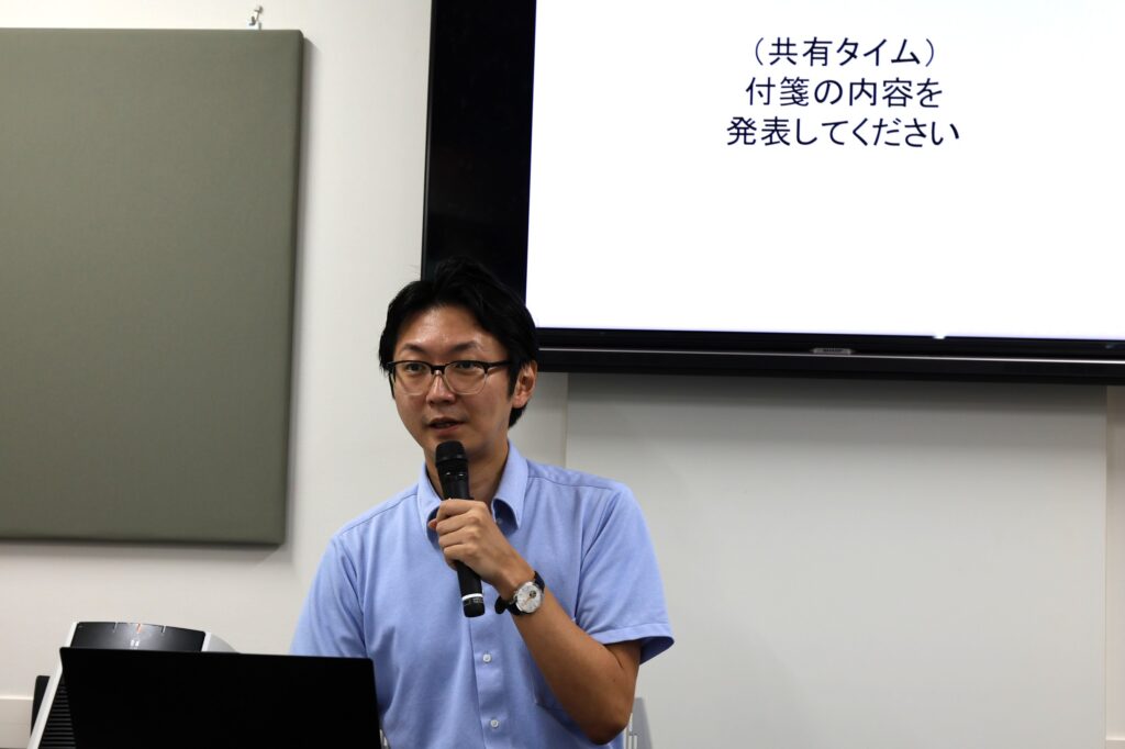 続いて、人事評価の仕組みについて。すでに設問①で少し時間も押していたので、付せんに書いてもらった後の発表は、全員ではなく平山社長による指名制としました。当該リポートも同じく押し気味ですので、要点をグッとまとめます。