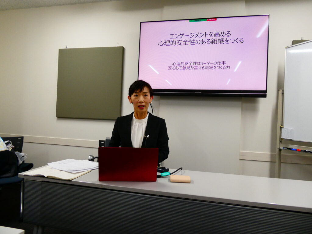 任意団体ヴィープス(木原一裕チェアマン)は11月25日、東京都千代田区・ちよだプラットフォームスクエアで11月度月例勉強会を開催しました。「心理的安全性はリーダーの仕事、安心して意見が言える職場をつくる」のテーマのもと、オンライン参加を含め23名が参加。人材育成コンサルタントの間野裕子氏を講師に、安心して意見を交わせる職場づくりについて学びました。